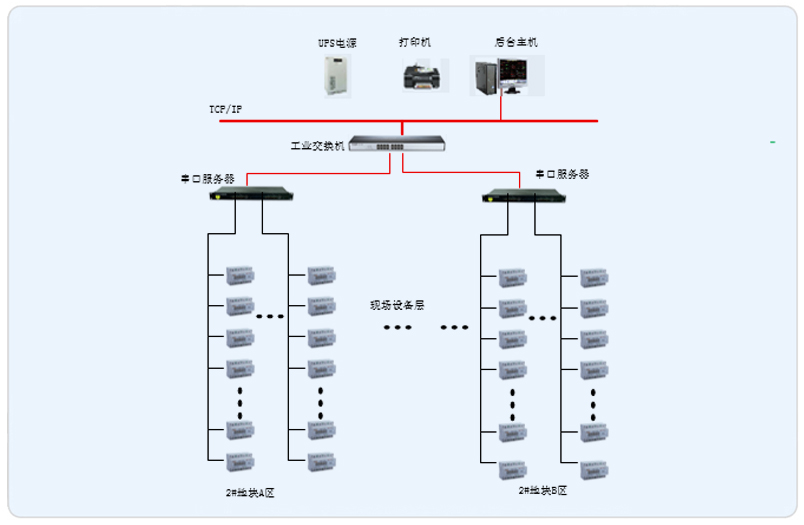 本項目為遵義奧特萊斯城市廣場的2#地塊,其中分為A區(qū)和B區(qū),A、B兩個區(qū)域,共使用了型號為DDSY1352-NK和DTSY1352-NK的內控型預付費電表328只。安科瑞Acrel-3200遠程預付費管理系統(tǒng)根據遵義奧特萊斯城市廣場實際情況進行組網設計,因為物業(yè)要求電費由財務收取,所以將遠程預付費管理系統(tǒng)主機設置在財務室內,而且現場儀表到財務室的距離都不超過300米,所以采集器都安裝在財務室內的操作臺里,現場所有的內控型預付費電表都是通過RS485總線直接入到采集器。