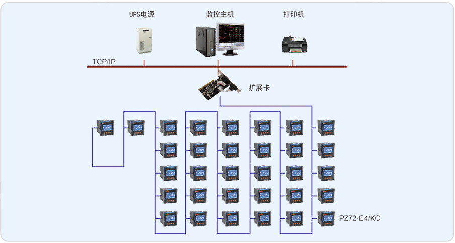 安科瑞電氣股份有限公司于2012年11月承接了常熟滌綸有限公司配電改造監控系統項目。采用Acrel-3000電能管理系統,完成了對四個廠區的電能計量功能,四個廠區共計一個高壓出線回路,32個低壓出線回路,均安裝PZ72-E4/KC可編程電測表,所有儀表均通過RS485總線連接至擴展卡,再通過擴展卡將數據上傳至到整個電能管理系統中。