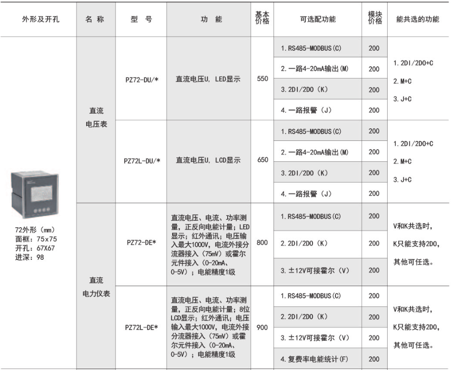 該系列儀表可測量直流系統中的電壓、電流、功率、正向與反向電能。可帶RS485通訊接口、模擬量數據轉換、開關量輸入/輸出等功能,既可用于本地顯示,又能與工控設備、計算機連接,組成測控系統。適用于直流屏、...