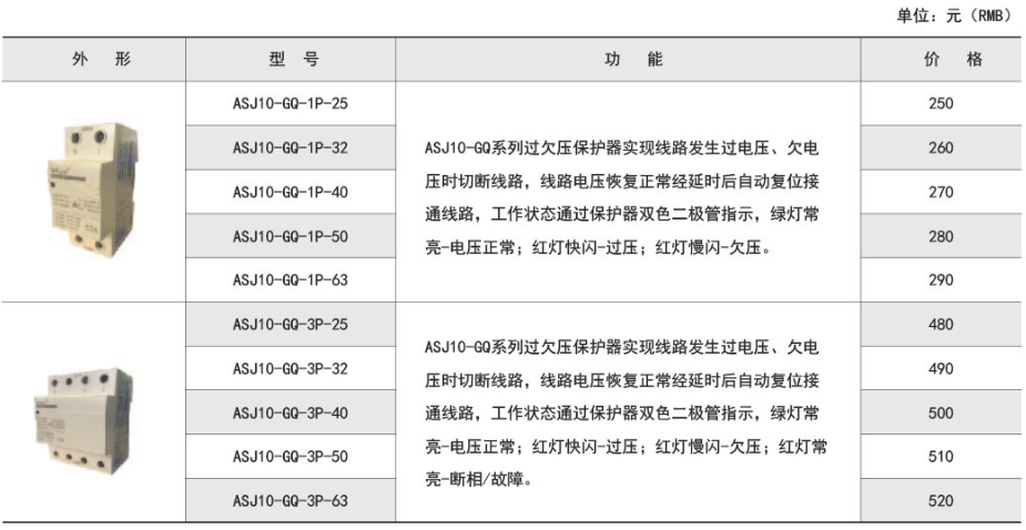 ASJ10-GQ系列自復式過欠壓保護器
