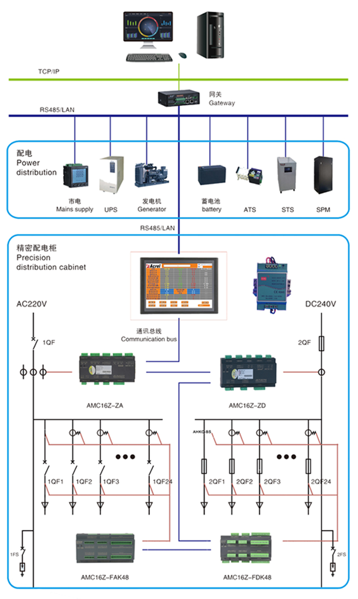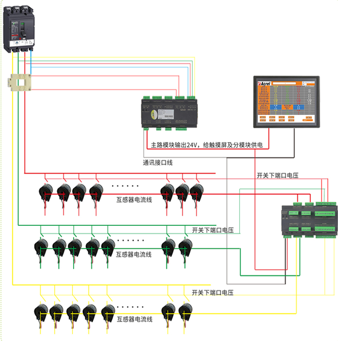 技術要求:輸入相電壓AC220V;進線電流AC 5A變比自設;出線電流變比AC100A/20mA;2路進線檢測;36路單相(或12路三相)出線檢測;1路開關量輸出。