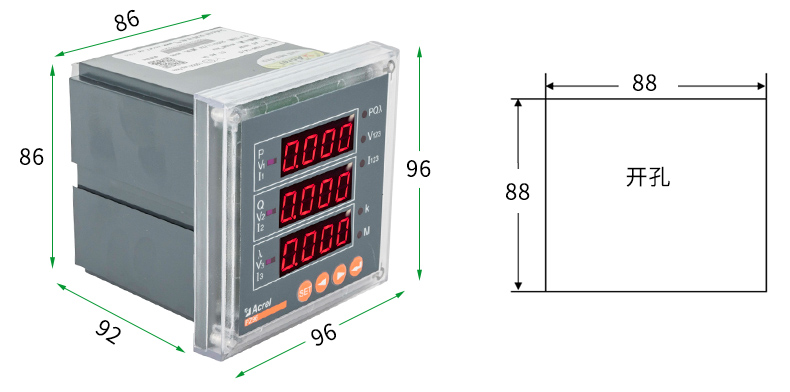 該系列儀表采用交流采樣技術,能分別測量電網中的電流、電壓、功率、功率因數和電能等參數。可帶RS485通訊接口、模擬量數據轉換、開關量輸入/輸出等功能,實現電力參數、電氣元件工作狀態的遠程傳輸,便于后臺監控系統集中檢測。
