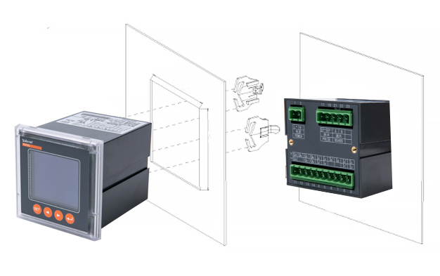 2、把儀表插入配電盤儀表孔中,插入儀表后,用卡扣固定安裝。