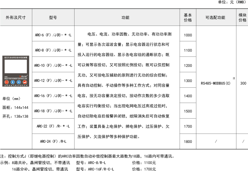 ● ARC液晶顯示功率因數自動補償控制器