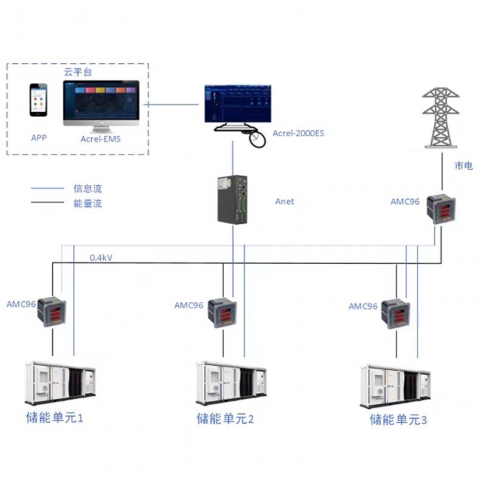 • 安科瑞工商業儲能能量管理系統儲能柜EMS解決方案Acrel-2000ES,專門針對工商業儲能柜、儲能集裝箱研發的一款儲能EMS,具有完善的儲能監控與管理功能,涵蓋了儲能系統設備(PCS、BMS、電表、消防、空調等)的詳細信息,實現了數據采集、數據處理、數據存儲、數據查詢與分析、可視化監控、報警管理、統計報表等功能。在高級應用上支持能量調度,具備計劃曲線、削峰填谷、需量控制、防逆流等控制功能。