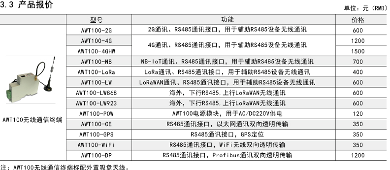 注:①AWT100-2G/NB/4G無線通信終端能通過安科瑞平臺協議與安科瑞服務器通訊。