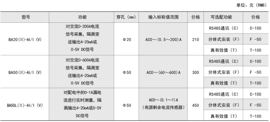 智能型BA系列電流傳感器
