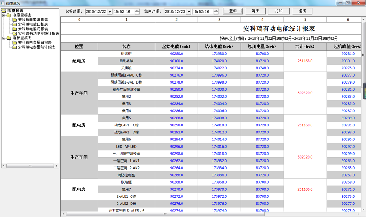 電能統(tǒng)計報表