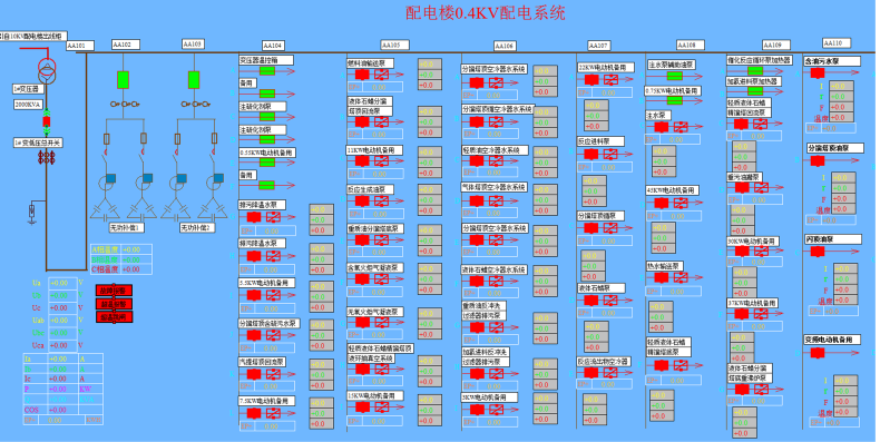 直觀顯示配電網(wǎng)的運行狀態(tài),實時監(jiān)測各回路電參數(shù)信息,動態(tài)監(jiān)視各配電回路有關故障、告警等信號。